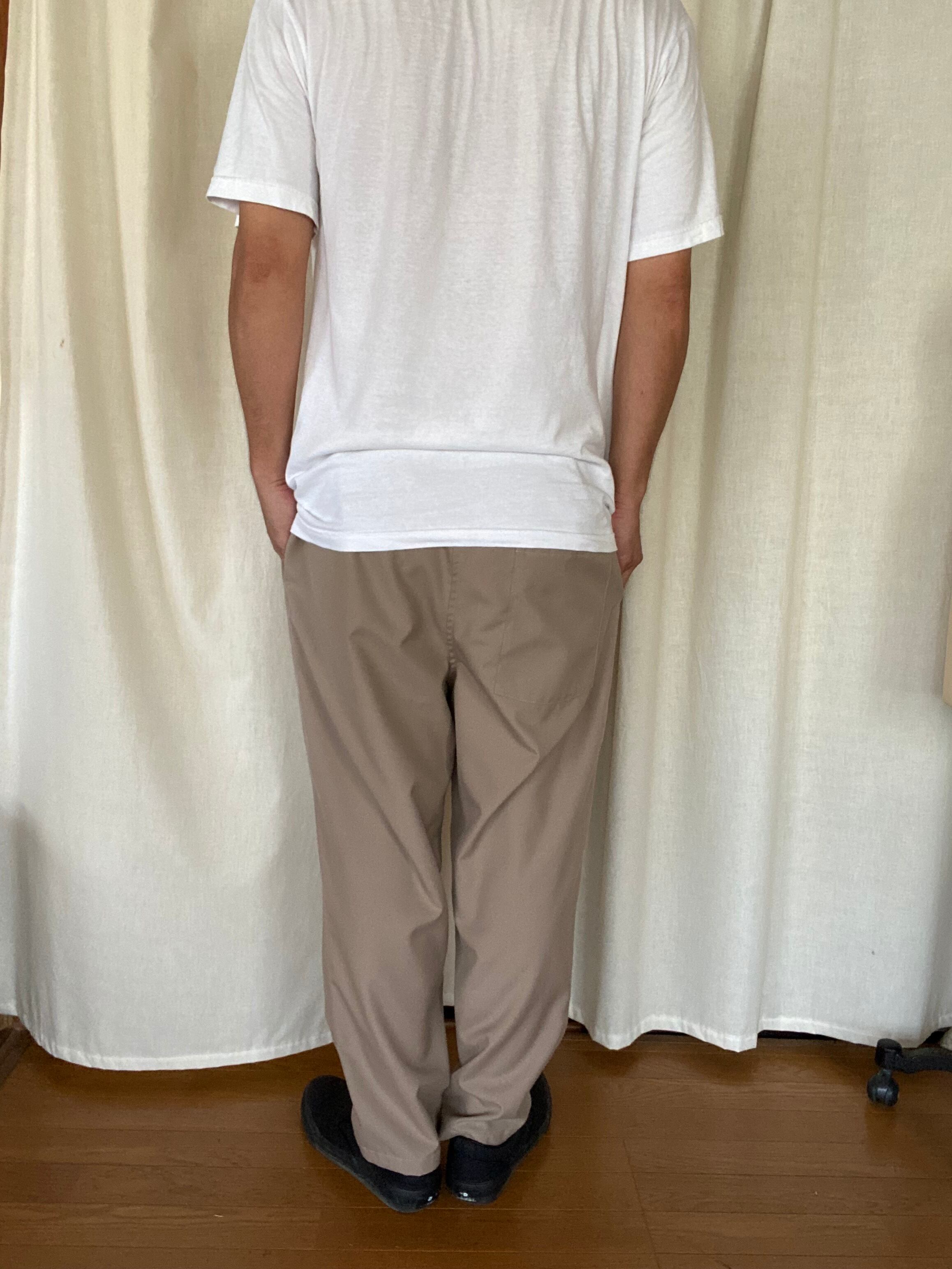 濃いベージュのコットン地/ウェストゴム仕様 着丈92 股上36 ワタリ幅34 すそ幅19